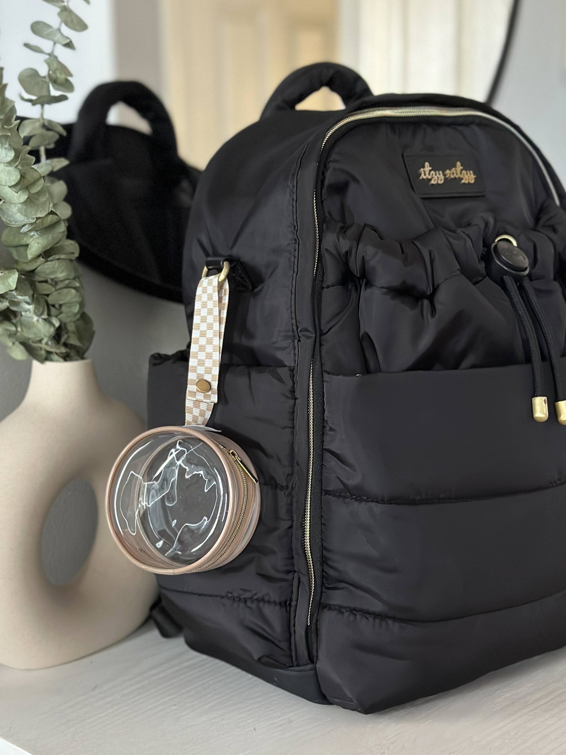 The clear winner in paci storage! The multi-use Itzy Paci Case™ attaches onto your diaper bag, purse, or travel bag to keep essential parenting items in clear view. Just snap the case to your diaper bag and go! - Keeps pacifiers clean and close. - Easily attaches to diaper bag or stroller. - Clear design for easy organization.