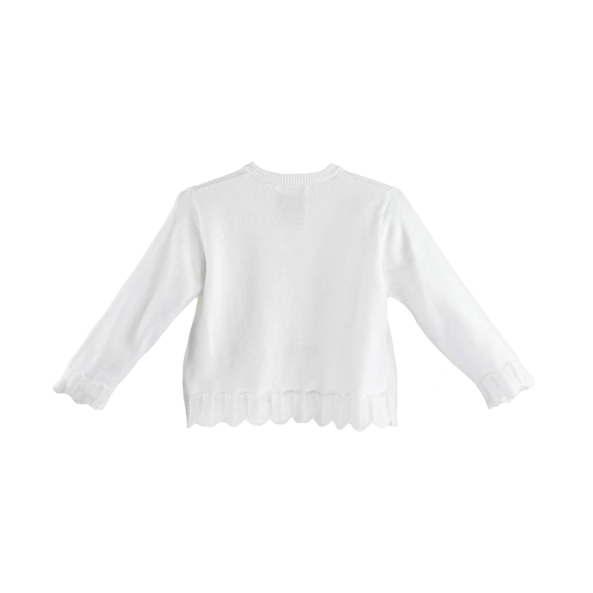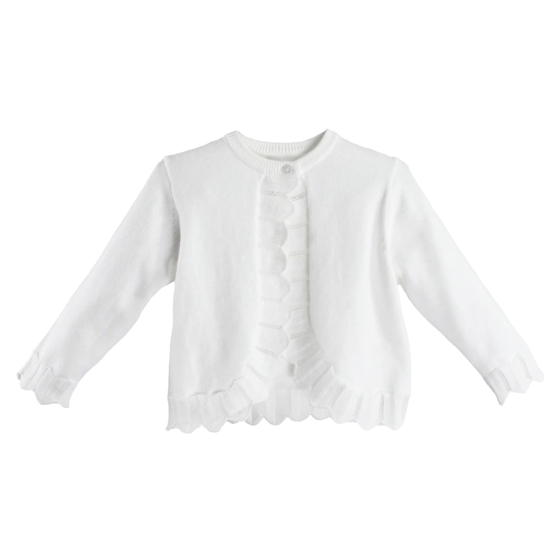 Our classic bolero type sweater for baby girls makes a beautiful accessory for family photos and special occasions. The beautiful and dainty pointelle work at the hem and sleeve adds a sweet and delicate touch and the single button at the neck makes this sweater perfect for wearing with a dress. This simple yet sweet cardigan is perfect for completing holiday outfits for Christmas or Easter and also great for church outfits and weddings too!